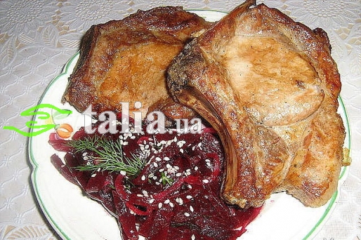 Подавайте антрекот с гарниром из свеклы, приготовленным заранее.