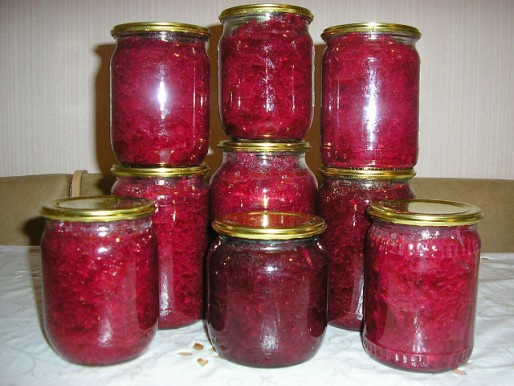 Ещё через 5 минут капусту и ещё через 5 минут свеклу и толчёное сало.