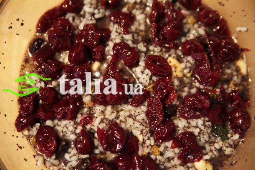 Украшаем вишнями, арахисом (часть арахиса оставьте для украшения). Кутья готова!