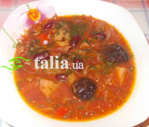 Рецепт. Пісний борщ з чорносливом і горіхами