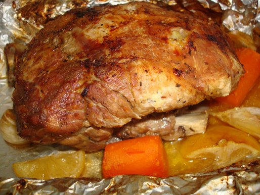 - Мясо смазать оливковым маслом и протереть специями для мяса, но не солить.